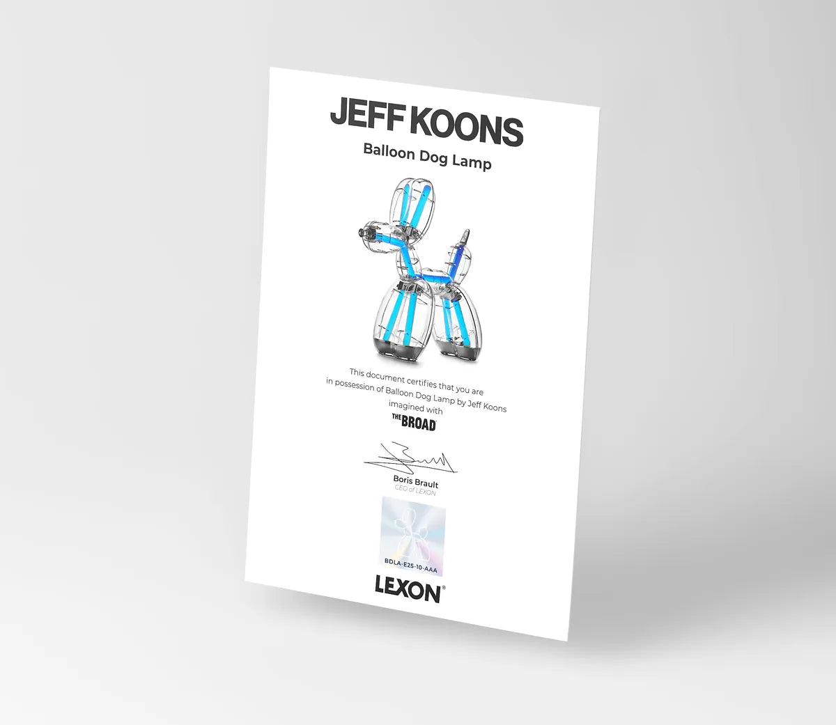 Neben der Bekanntheit von dem Künstler Jeff Koons, der Skulptur "Balloon Dog" ist dies eine exklusive Zusammenarbeit zwischen Lexon - der französischen Designmarke, Jeff Koons - dem Künstler und dem Broad Museum in Los Angeles.